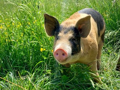 Our heritage-breed hogs are known for their exceptional flavor, juicy meat, and great marbling. We partner with a local farm neighbor who breeds their Berkshire boar and Hereford mix sows to produce fabulous piglets - the best meat we have ever raised!