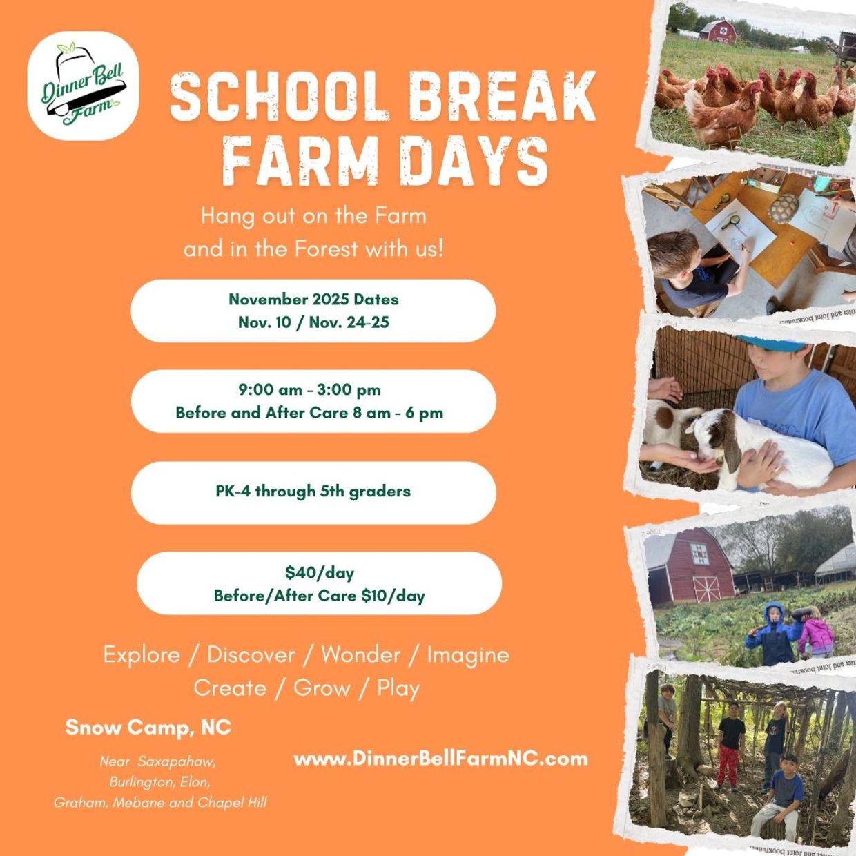 We provide opportunities for extended time outdoors in a natural and supportive environment with friends: